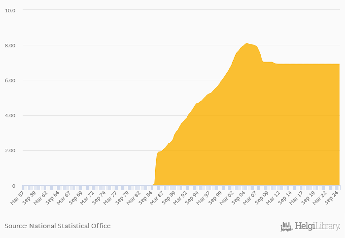 Historically, FX rate to USD at the end of period in Bolivia reached an all time high of 8.09 per USD in 2Q2005 and an all time low of < 0.001 per USD in 1Q1957.