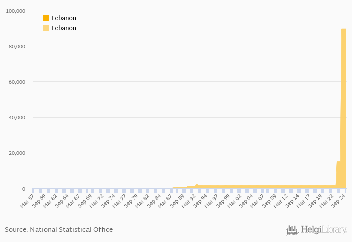 Historically, FX rate to USD at the end of period in Lebanon reached an all time high of 89,500 per USD in 1Q2025 and an all time low of 2.22 per USD in 2Q1975.