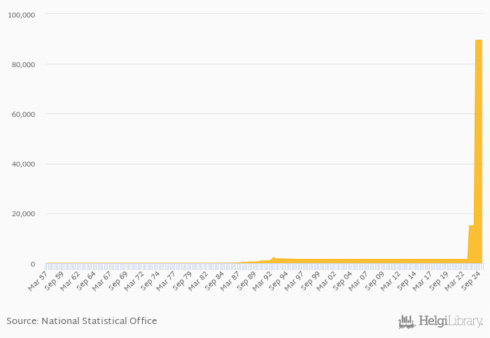 FX rate to USD at the end of period rose 0% yoy to 89,500 per USD in Lebanon in 1Q2025, according to the National Statistical Office. This is 0% more than in the previous quarter.