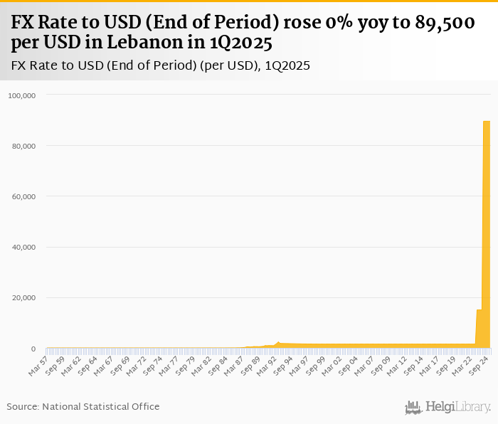 FX Rate to USD (End of Period) rose 0% yoy to 89,500 per USD in Lebanon in 1Q2025