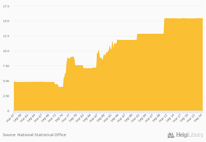 Historically, FX rate to USD at the end of period in Maldives reached an all time high of 15.4 per USD in 1Q2025 and an all time low of 3.93 per USD in 1Q1974.