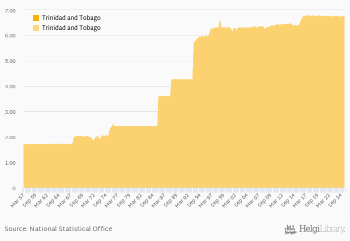 Historically, FX rate to USD at the end of period in Trinidad and Tobago reached an all time high of 6.79 per USD in 2Q2017 and an all time low of 1.68 per USD in 4Q1957.