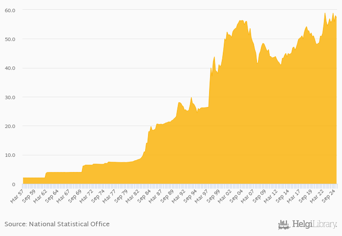 Historically, FX rate to USD at the end of period in Philippines reached an all time high of 58.9 per USD in 3Q2022 and an all time low of 2.02 per USD in 1Q1957.