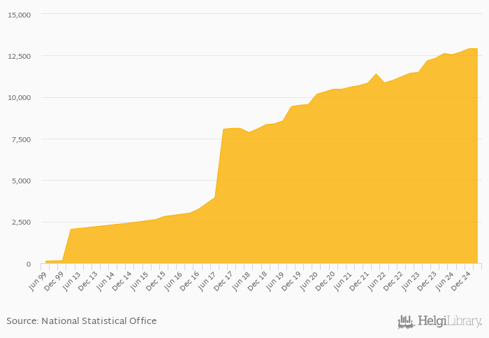 FX rate to USD at the end of period rose 2.32% yoy to 12,913 per USD in Uzbekistan in 1Q2025, according to the National Statistical Office. This is 0.056% less than in the previous quarter.