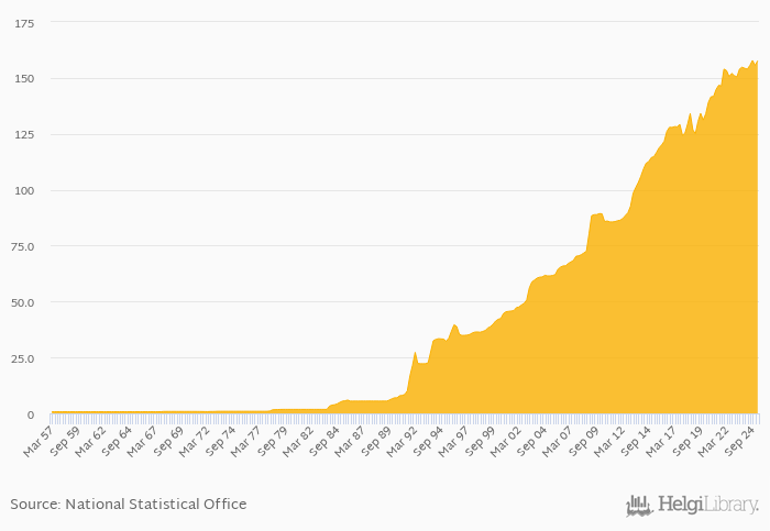 Historically, FX rate to USD at the end of period in Jamaica reached an all time high of 158 per USD in 3Q2024 and an all time low of 0.699 per USD in 4Q1957.