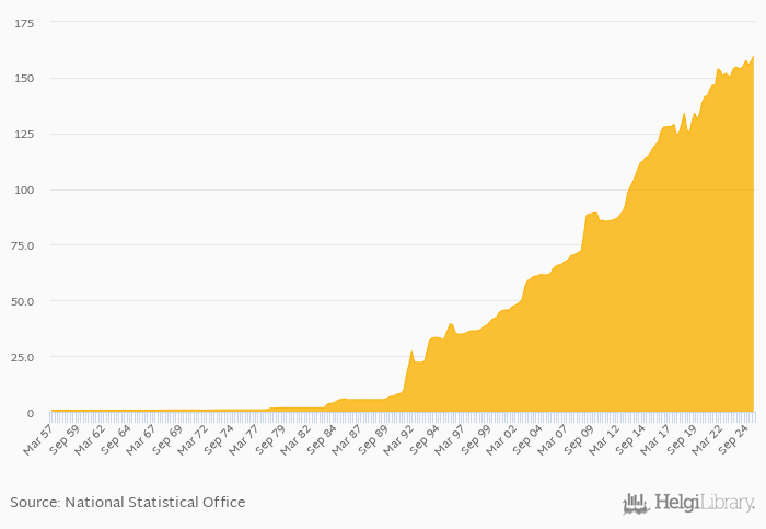 FX rate to USD at the end of period rose 2.62% yoy to 160 per USD in Jamaica in 2Q2025, according to the National Statistical Office. This is 1.26% more than in the previous quarter.