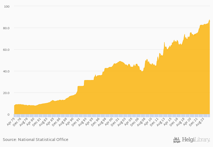 Historically, FX rate to USD at the end of period in India reached an all time high of 87.4 per USD in February 2025 and an all time low of 4.75 per USD in April 1958.