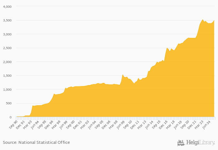 FX rate to USD at the end of period rose 3.31% yoy to 3,488 per USD in Mongolia in 1Q2025, according to the National Statistical Office. This is 1.96% more than in the previous quarter.