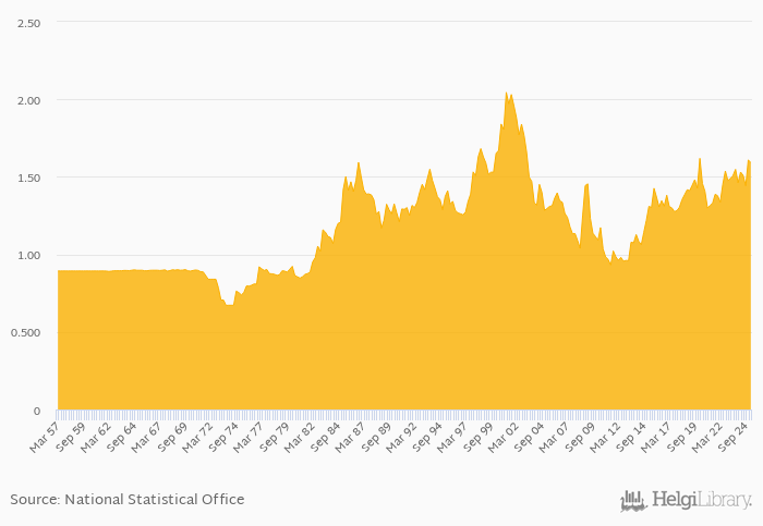 FX rate to USD at the end of period rose 4.01% yoy to 1.59 per USD in Australia in 1Q2025, according to the National Statistical Office. This is 1.00% less than in the previous quarter.