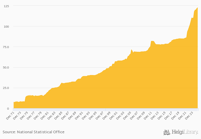 FX rate to USD at the end of period rose 4.05% yoy to 123 per USD in Bangladesh in 2Q2025, according to the National Statistical Office. This is 0.635% more than in the previous quarter.