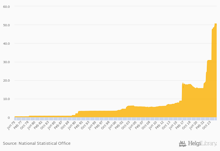 Historically, FX rate to USD at the end of period in Egypt reached an all time high of 50.8 per USD in December 2024 and an all time low of 0.351 per USD in January 1957.