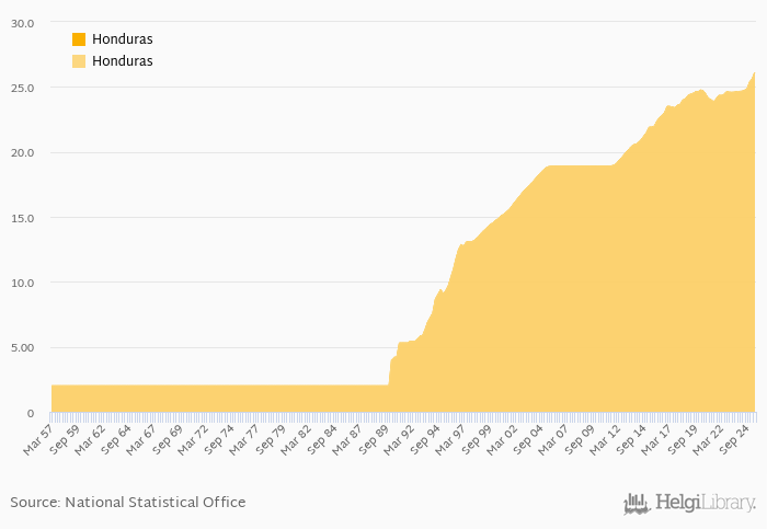 | Honduras | per USD | 24.7 | 24.7 | 24.7 | 24.8 | 25.4 | ||||||||||||||||