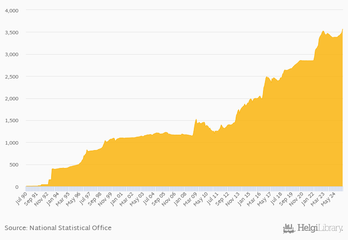 FX rate to USD at the end of period rose 5.70% yoy to 3,571 per USD in Mongolia in April 2025, according to the National Statistical Office. This is 2.39% more than in the previous month.