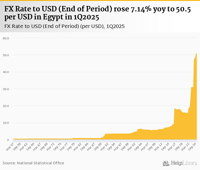 FX Rate to USD (End of Period) rose 7.14% yoy to 50.5 per USD in Egypt in 1Q2025
