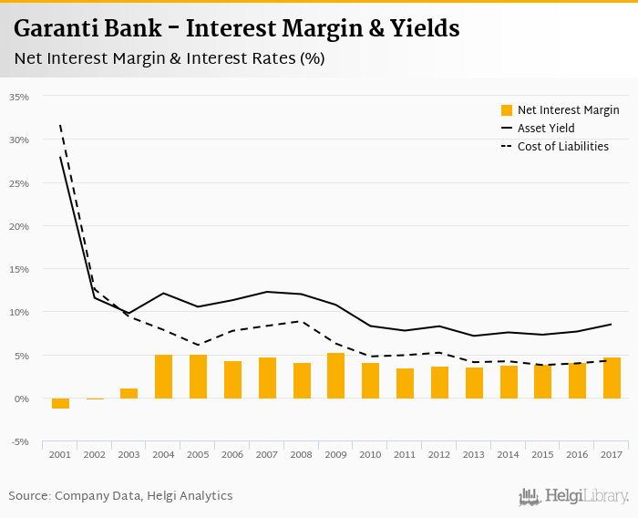 Garanti Bank's net interest margin amounted to 4.69% in 2017, up from 4.14% compared to the previous year.