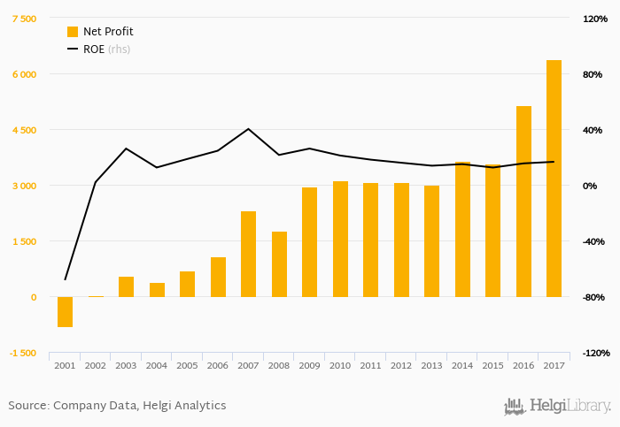 Comparing Garanti Bank with its closest peers, Isbank generated a net profit of TRY 5,749 mil with ROE of 10.8% in 2017, Yapi Kredi Bank netted TRY 3,614 mil (ROE of 12.9%) and VakifBank announced a net profit of TRY 3,910 mil implying ROE of 17.5%.