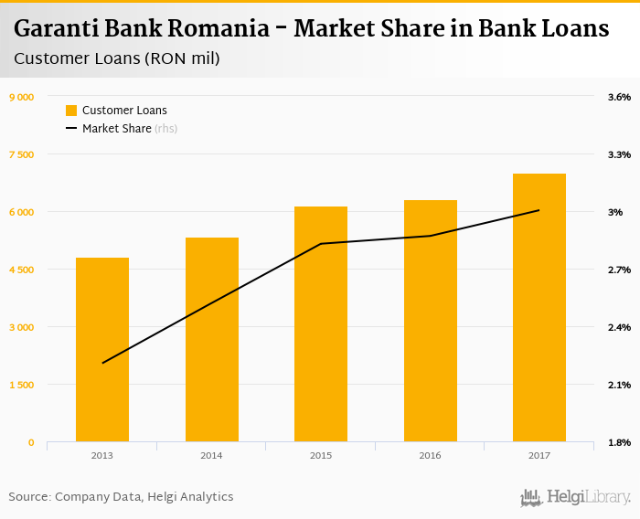Garanti Bank Romania's customer loans reached RON 6,990 mil in 2017, up 10.6% compared to the previous year.