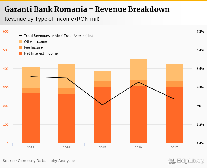 Bank's total revenues accounted for 4.28% total assets in 2017, down from 5.01% a year earlier.
