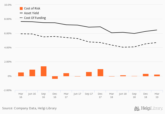 On the other hand, average asset yield was 6.45% in 1Q2019, up from 6.06% when compared to the same period last year. Cost of funding amounted to 4.69% in 1Q2019, up from 4.34%.