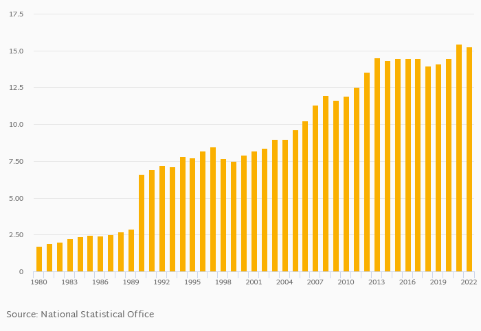 | GDP Per Unit of Energy Use (PPP $ Per kg of Oil Equivalent) | Unit | 2003 | 2004 | 2005 | 2006 | 2007 | 2008 | 2009 | 2010 | 2011 | 2012 | 2013 | 2014 | 2015 | 2016 | 2017 | 2018 | 2019 | 2020 | 2021 | 2022 | 2023 |