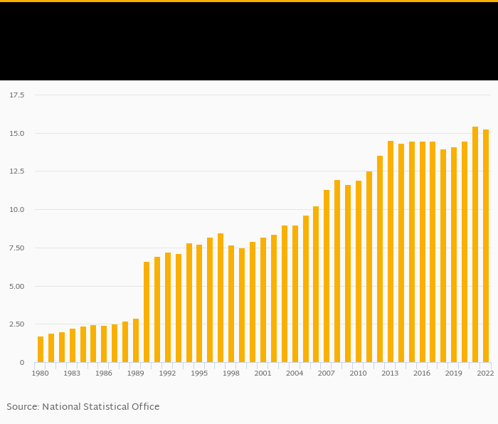| Philippines | USD | 14.3 | 15.1 | 16.2 | 15.9 | 16.7 | ... | |||||||||||||||