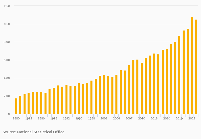 | GDP Per Unit of Energy Use (PPP $ Per kg of Oil Equivalent) | Unit | 2003 | 2004 | 2005 | 2006 | 2007 | 2008 | 2009 | 2010 | 2011 | 2012 | 2013 | 2014 | 2015 | 2016 | 2017 | 2018 | 2019 | 2020 | 2021 | 2022 | 2023 |