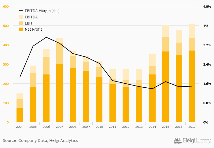 As far as Geco's peers are concerned, PEAL posted net and EBITDA margin of 0.377% and 0.721%, respectively in 2017, PHOENIX Lekarensky Velkoobchod generated margins of 1.16% and 1.42%