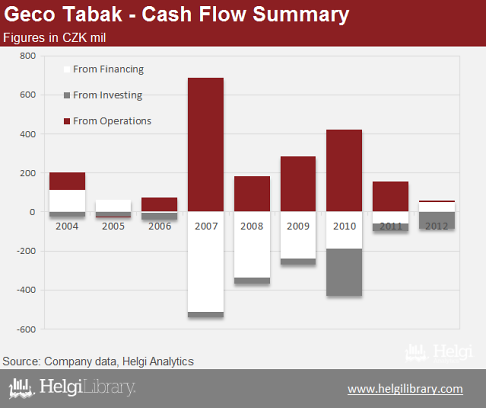 Since 2004, the Company has more than doubled its sales and net profit, to CZK 17.3 bil and CZK 183 mil, respectively, as of the end of 2012. Although operating margin halved since 2005 to 1.3% now, the Company remains impressively profitable with average ROE accounting for 40-50% in the last five years