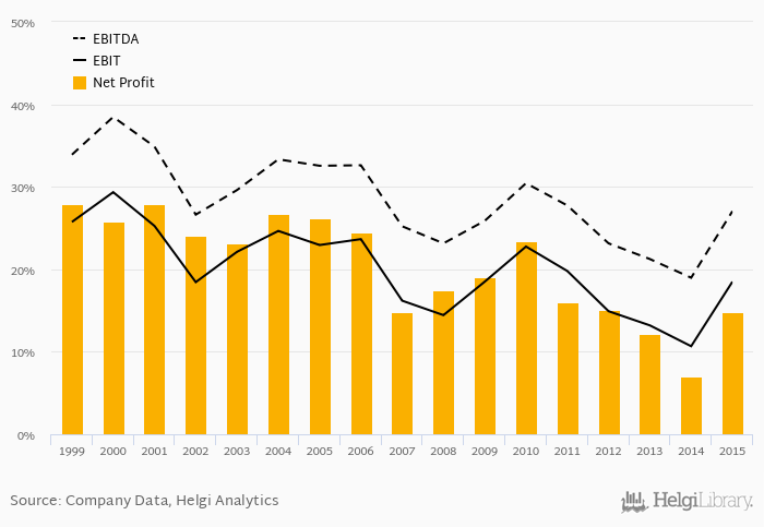 On the operating level, the EBITDA margin reached 27.0% and EBIT amounted to 18.5% of sales in 2015.