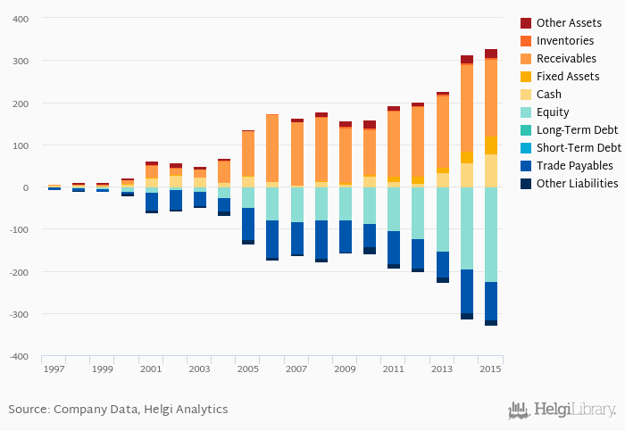 Net debt against equity is down 0.043 pp from five years ago (-0.302). The ratio against EBITDA increased from -1.70x seen in 2010 to -1.56x.