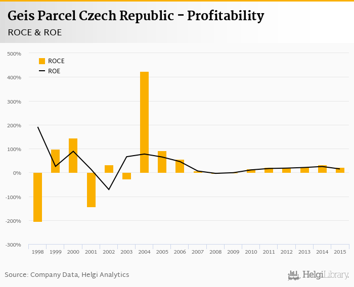 As far as Geis Parcel Czech Republic's peers are concerned, PPL Czech Republic generated ROE of 15.3% and ROCE of 19.4% in 2015. Ceska Posta's profitability reached 2.31% and 10.2%, respectively. DHL Express Czech Republic operated with 30.2% and 22.8% returns in 2015.