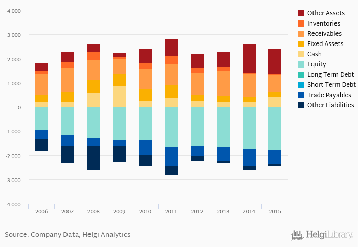 Net debt against equity is down 0.045 pp from five years ago (-0.200). The ratio against EBITDA increased from -5.41x seen in 2010 to 5.89x.