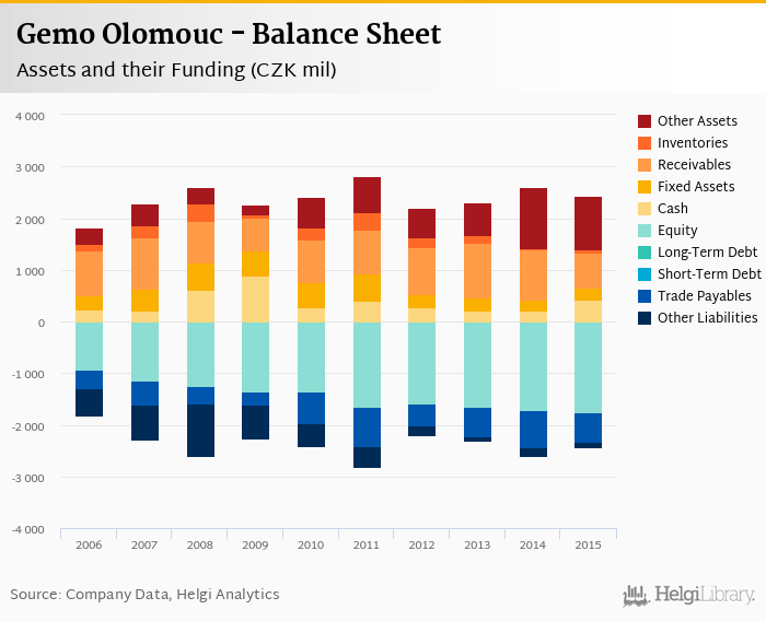 Gemo Olomouc's total assets reached CZK 2,431 mil at the end of 2015, down 6.69% compared to the previous year.