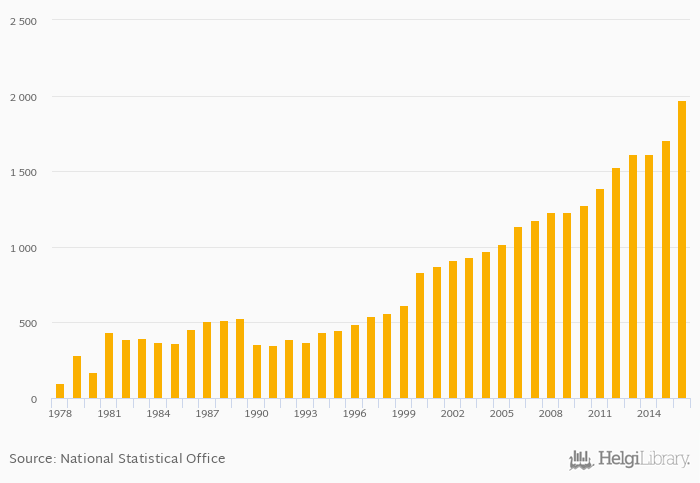 Historically, geothermal, biomass and other consumption in Switzerland reached an all time high of 1,972 GWh in 2016 and an all time low of 98.0 GWh in 1978. When compared to Switzerland's main peers, geothermal, biomass and other consumption in Austria amounted to 4,593 GWh, 7,061 GWh in France, 51,751 GWh in Germany and 25,770 GWh in Italy in 2016.