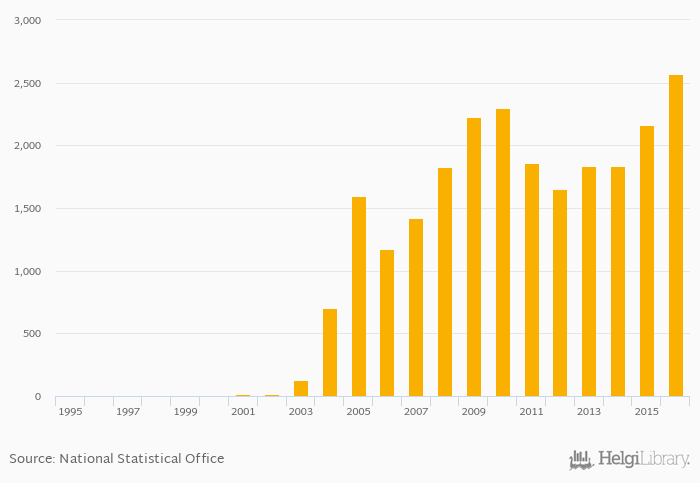 Geothermal, biomass and other consumption rose 18.9% to 2,570 GWh in Hungary in 2016, according to World Bank / EIA.