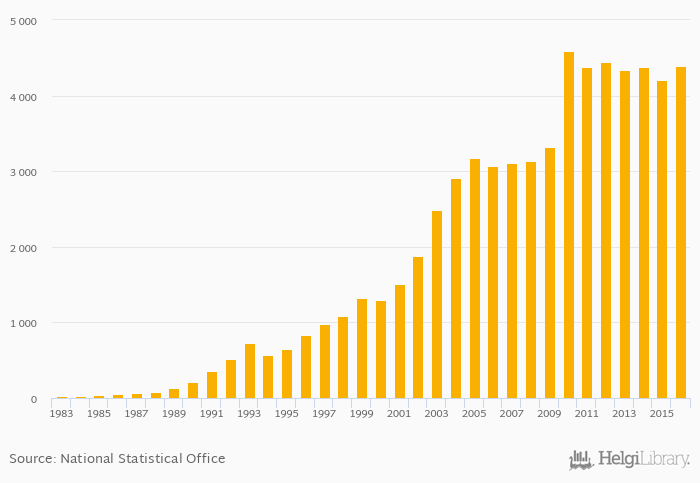 Geothermal, biomass and other consumption rose 4.45% to 4,394 GWh in Denmark in 2016, according to World Bank / EIA.