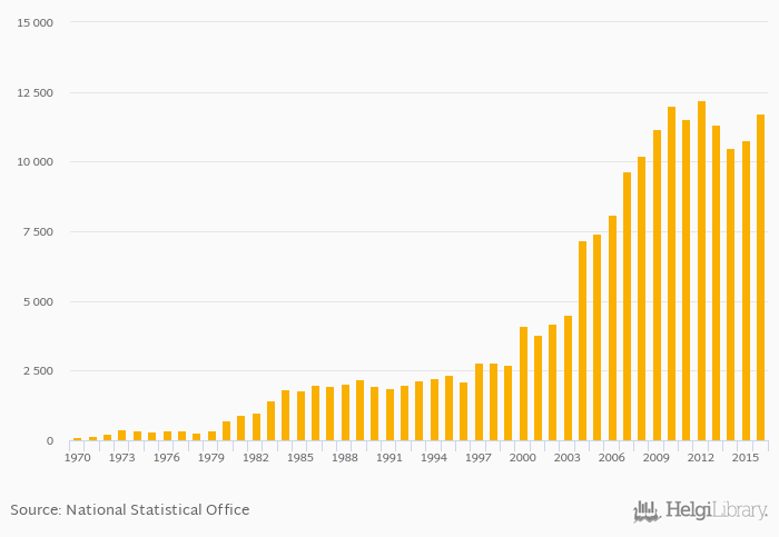 Historically, geothermal, biomass and other consumption in Sweden reached an all time high of 12,189 GWh in 2012 and an all time low of 130 GWh in 1970.