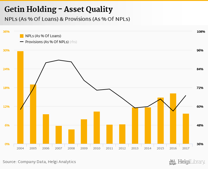 Provision coverage amounted to 66.9% at the end of 2017, up from 56.9% compared to a year earlier.