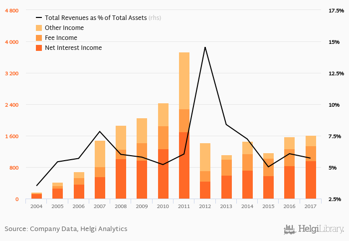 Bank's total revenues accounted for 5.72% total assets in 2017, down from 6.07% a year earlier.
