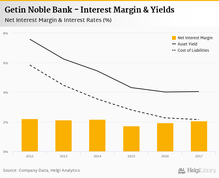Comparing Getin Noble Bank with its closest peers, Alior Bank operated in 2017 with a net interest margin of 4.35% in 2017, Getin Holding reached 3.55% and Idea Bank some 3.00%.