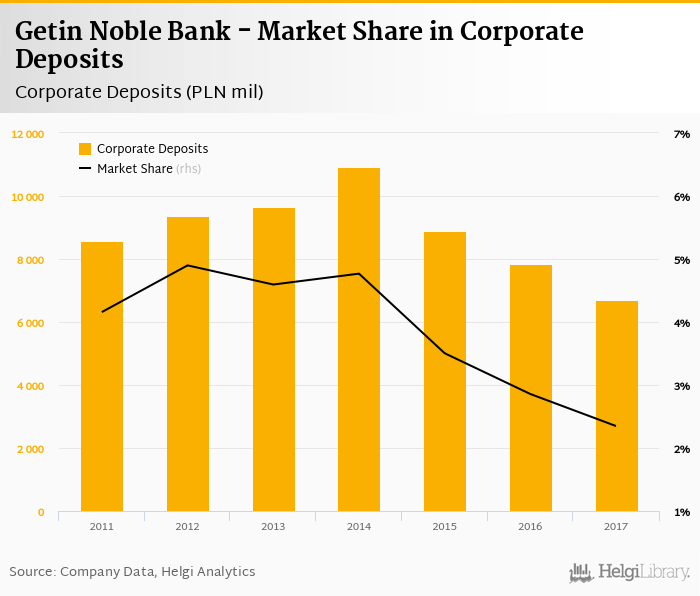 Getin Noble Bank's corporate deposits reached PLN 6,690 mil in 2017, down 14.8% compared to the previous year.