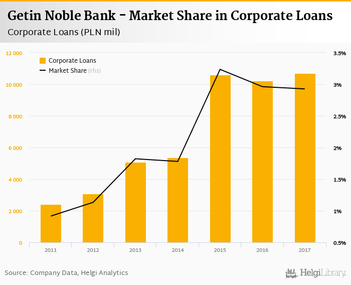 Getin Noble Bank's corporate loans reached PLN 10,713 mil in 2017, up 4.85% compared to the previous year.