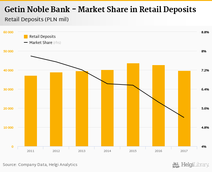 Getin Noble Bank's retail deposits reached PLN 39,619 mil in 2017, down 7.35% compared to the previous year.