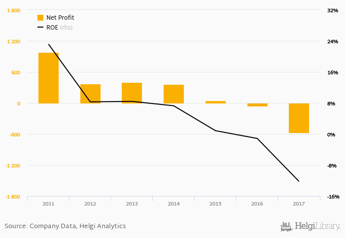 The bank generated its shareholders an average return on equity of 0.644% in the last five years with maximum at 8.41% and minimum at -12.2%