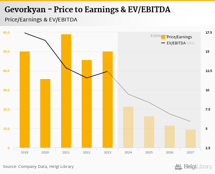 Gevorkyan stock traded at EUR 11.3 per share at the end 2023 translating into a market capitalization of USD 208 mil.