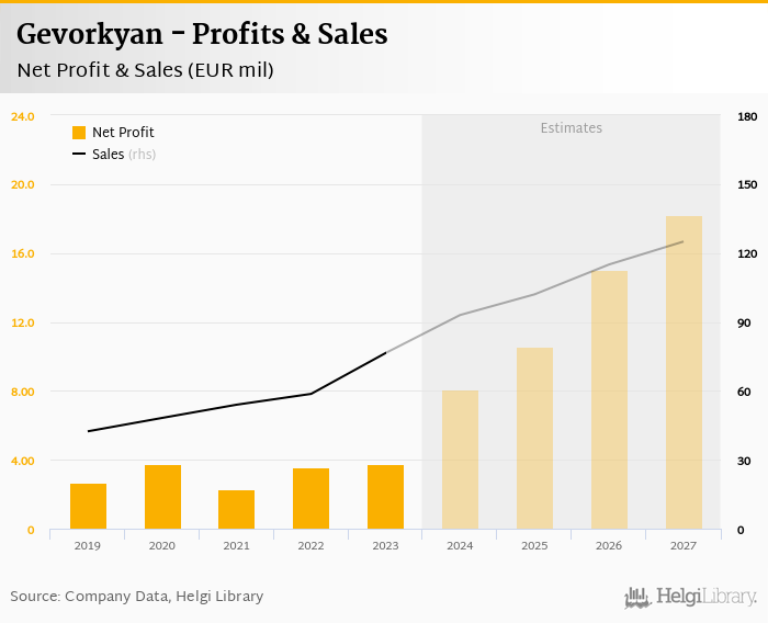 Gevorkyan made a net profit of EUR 3.75 mil in 2023, up 6.06% compared to the previous year. Total sales reached EUR 76.5 mil, which is up 30.3% when compared to the previous year.