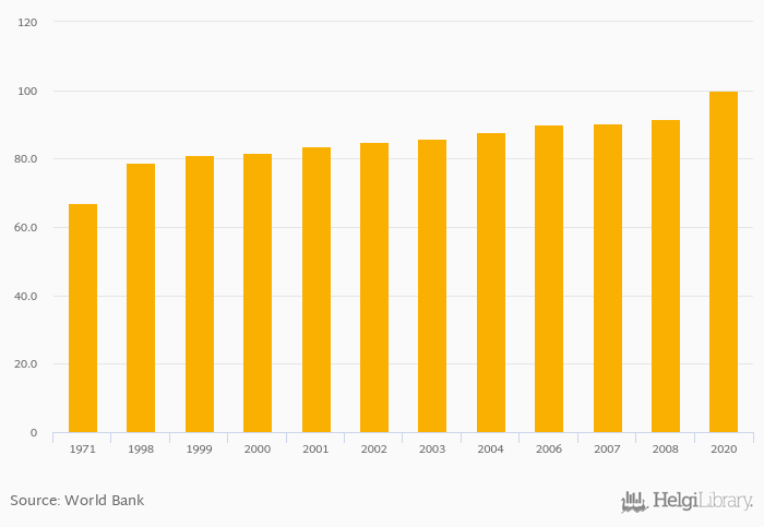 Historically, girls to boys in primary and secondary education in Cambodia reached an all time high of 100% in 2020 and an all time low of 66.9% in 1971.