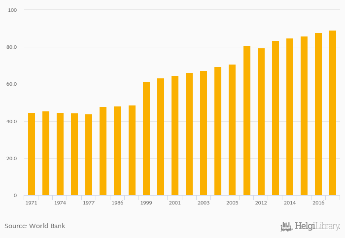 | Ivory Coast | % | ... | ... | ... | ... | ... | ... | ... | ... | ... | ... | ... | 81.8% | 83.4% | 85.1% | 86.8% | 88.4% | |||||