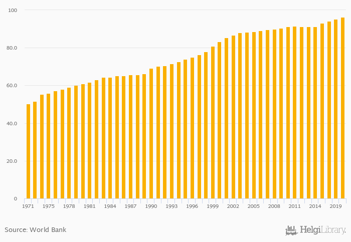 | Portugal | % | 96.7% | 97.0% | 97.4% | 98.6% | 99.3% | ... | |||||||||||||||