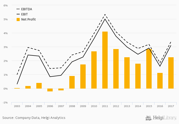 On the operating level, the EBITDA margin reached 3.36% and EBIT amounted to 3.10% of sales in 2017.